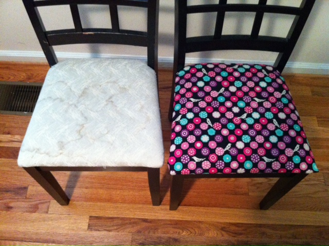 As I was getting ready for the party I decided I needed to recover my spare dining chairs. So I loaded all the kids in the van and we went to the fabric store to get fabric for that project and a table cloth for the kids table and another table cloth for my dining room. The only reason this was financially possible was the 50% off sale at the nice fabric store nearby. So all that cost less than the day before when I went I to the party store to buy balloons and ended up spending $50. on “1st Birthday” party supplies. I finally realize why the baby of the family gets spoiled… being the last kid, I think, we just want to treasure all the last milestones. This was the last time I was going to have a one year old. I made all their birthdays as wonderful as possible but now I am sort of celebrating my own milestone and trying to hold on to my own memories. This was a great first birthday.